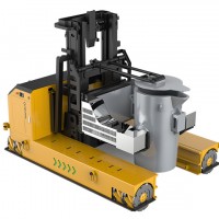 個性化定制的一款適用于澆鑄車間對高溫高危的鐵水包進行 自動接取、傾倒等流程化作業的設備。它是在麥克納姆輪智 能前移叉車的基礎上安裝了特殊的作業屬具,具備斜行、側 移、全方位無死角任意方向可移動的特性,搭載激光導航, 根據規劃好的路徑自動導引運行。代替傳統的行車吊送或人 工叉車運送的作業模式,解放人力,安全作業。