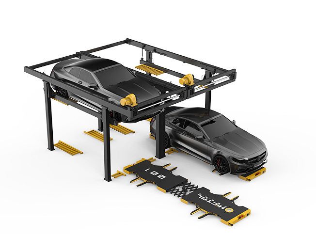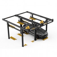 梳齒二層簡易升降智能設備是專門針對自主研發的夾持式停車機器人系統相配套而研發的停車設備。該設備有效利用上下兩層空間,由主體框架、提升驅動、左右梳齒架組成,在調度系統的控制下,夾持式停車機器人將車輛搬運至設備梳齒架上,左右梳齒架將車輛提升至第二層,設備底層可再停一輛車。不僅可以提升車位數量,更可以對傳統的兩層升降橫移或簡易升降等類型車庫做智能化升級,實現無人智能化停取車。