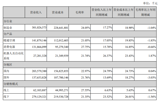 根據美的集團2021年年度報告顯示,2021年全年,美的集團實現營業總收入約3412億元,同比增長20.06%;實現扣非凈利潤約259億元,同比增長5.34%。其中,機器人與自動化業務在2021年實現營收約273億元,同比增長26.37%。