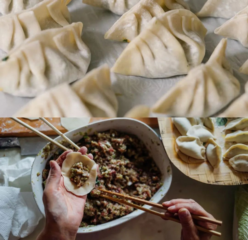 ▲留守員工集體包餃子
