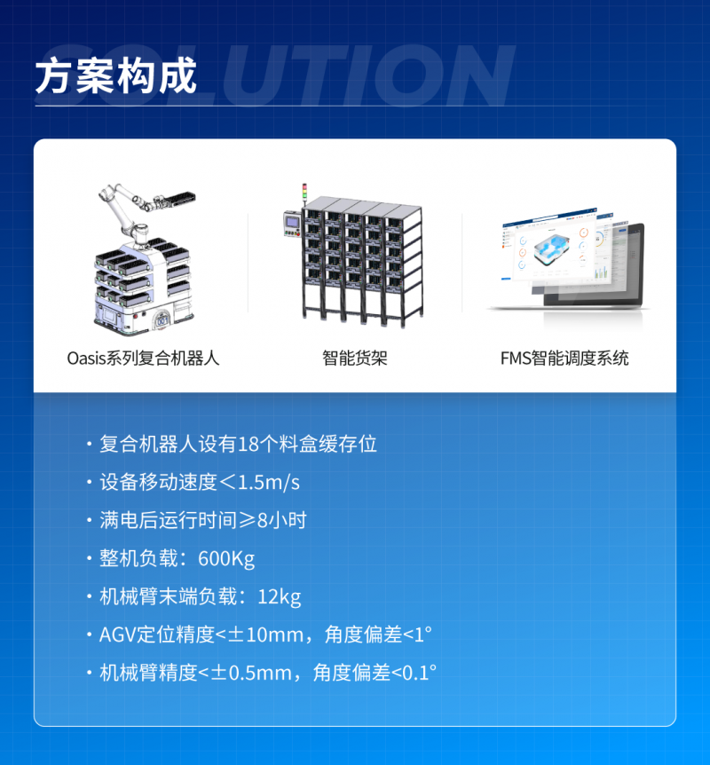 基于Oasis600UL搭載協(xié)作機械臂而成的復(fù)合機器人,可實現(xiàn)封測物料到達智能貨架后,由AMR從智能貨架自動送入烘烤箱,烘烤完成后,由AMR自動下料至氮氣貨架,每趟可搬運18摞物料。