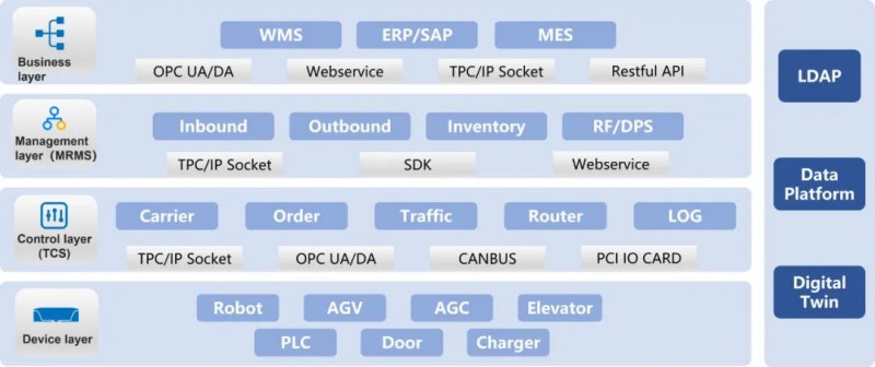 新松自主研發(fā)了強大的移動機器人控制系統(tǒng)——iMRS,不僅能實現(xiàn)復(fù)雜環(huán)境下的車體控制、邏輯調(diào)度,還能兼容客戶WMS、ERP、MES等上位系統(tǒng),實現(xiàn)與工業(yè)機器人、PLC,電梯、智能門系統(tǒng)的協(xié)同作業(yè),賦予移動機器人一顆智慧的大腦。