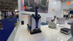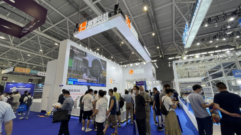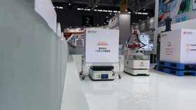 展會現場,所有的AMR機器人都由同一套調度管理系統CLOUDIA的指揮,在有限的展臺空間內同場運行,相互協調,協同作業,實現狹窄空間內的異構機器人集群混場調度應用。