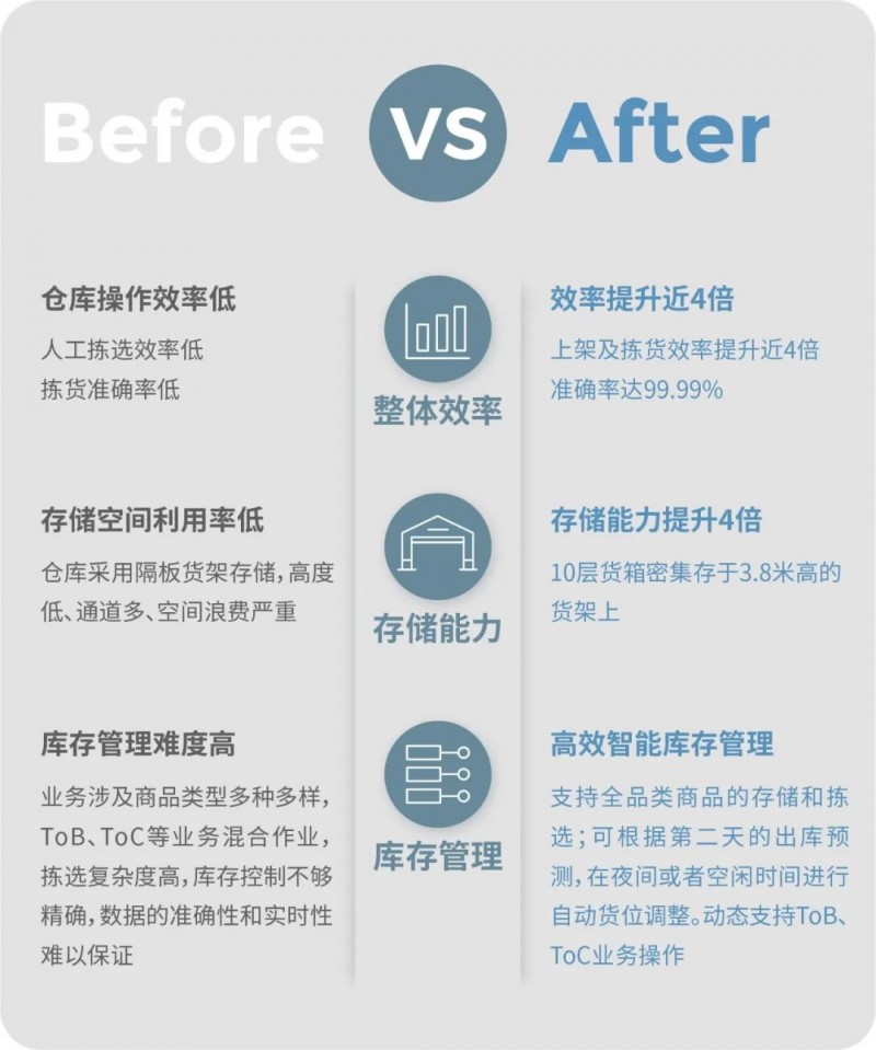 全球AMR引領者極智嘉(Geek+)的全能型貨到人揀選方案PopPick成功落地某辦公耗材知名企業(yè),助力其揀選效率和存儲能力均提升近4倍,以高創(chuàng)新力和高質量交付能力為客戶創(chuàng)造真實商業(yè)價值。