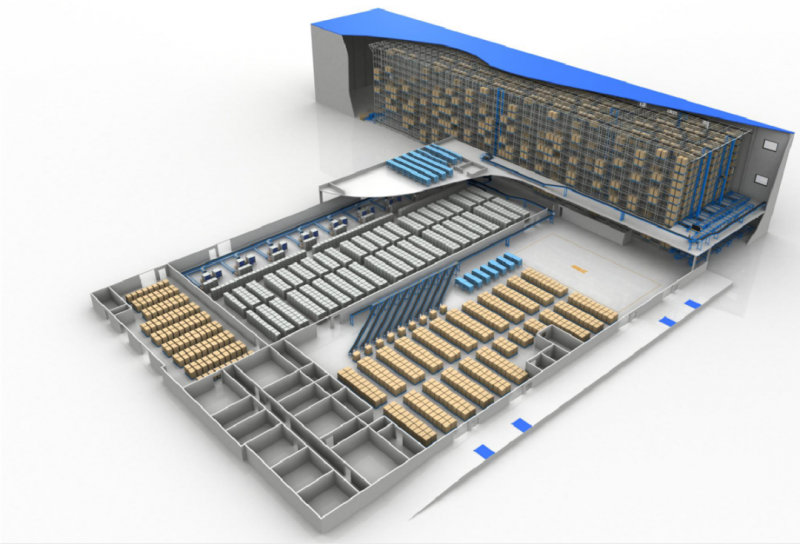 含有5臺高22米的堆垛機的ASRS存儲系統(tǒng),共10,080個托盤貨位