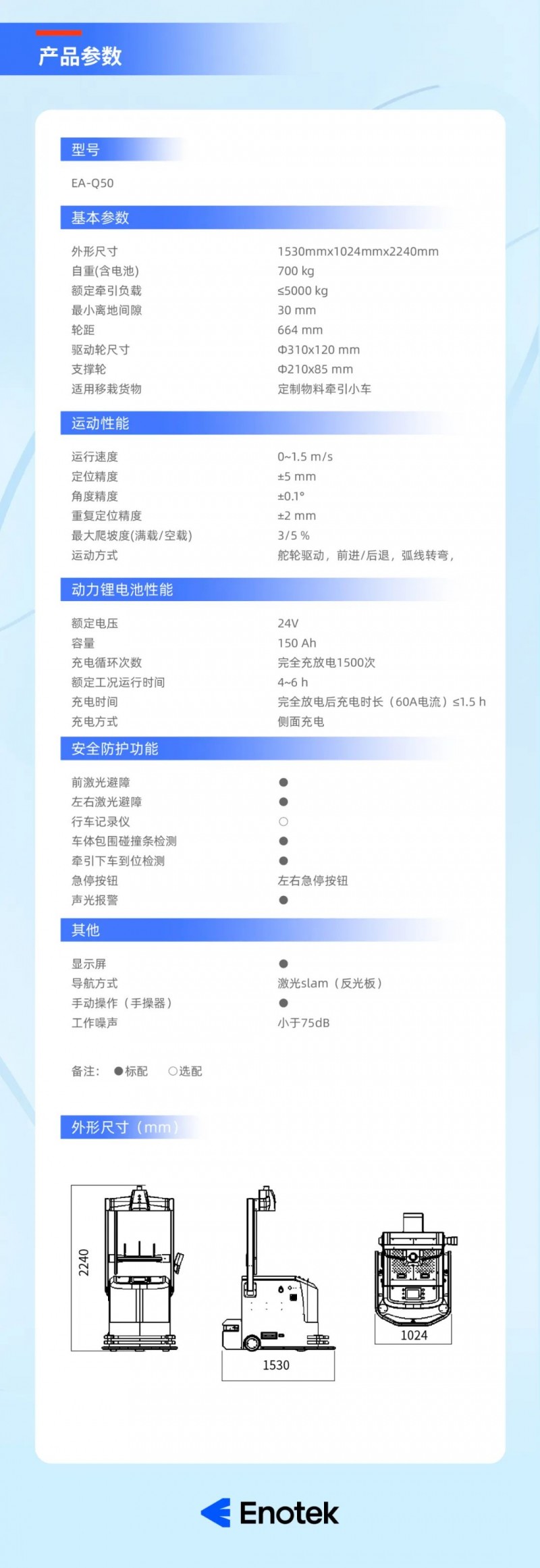 安歌科技一直致力于努力研發(fā),突破壁壘,不斷完善產(chǎn)品系列,開拓更多行業(yè)應(yīng)用,服務(wù)中國(guó)智能制造與智能物流。經(jīng)過潛心研發(fā),安歌科技牽引式AGV EA-Q50 重磅上市啦!