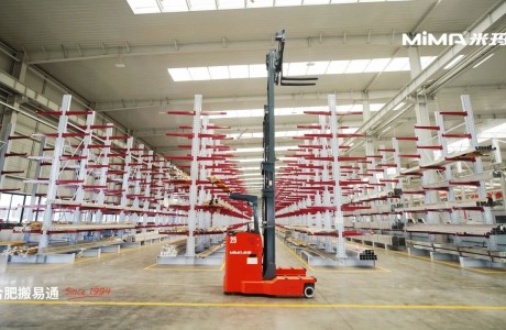 MiMA米瑪窄體全向叉車MQ25助力金屬材料制造企業密集倉儲升級!