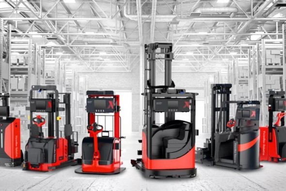 第一臺無人叉車采用配備 JBT 自動化系統機器人技術的 Crown R 1000 系列雙深位前移式叉車。