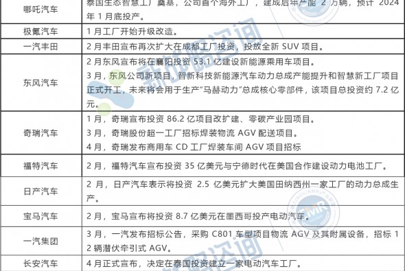 2023上半年汽車行業(yè)投資擴產(chǎn)及AGV項目招標(biāo)情況分析