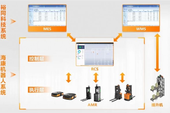 - 目前已部署潛伏和叉取系列機器人,共計近300臺AMR運行在智能工廠中,覆蓋3個樓層,涉及原材料倉儲、車間產線配送、成品倉儲。