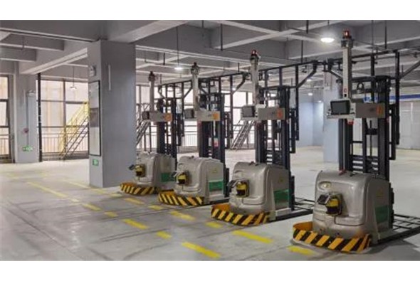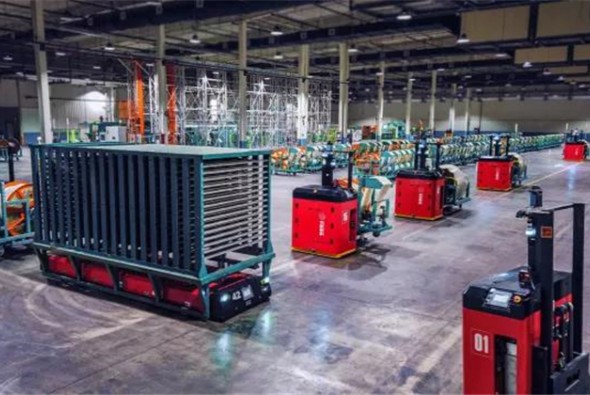 - 目前已部署潛伏和叉取系列機器人,共計近300臺AMR運行在智能工廠中,覆蓋3個樓層,涉及原材料倉儲、車間產線配送、成品倉儲。