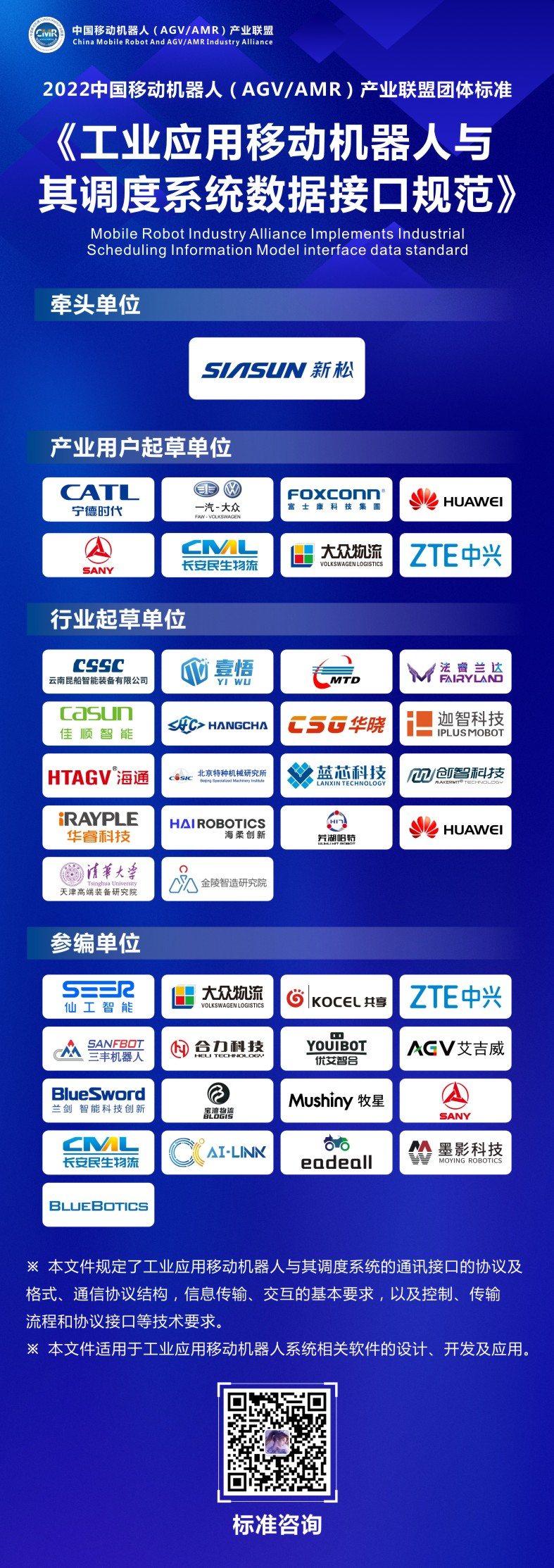 該標準邀請了包括寧德時代、一汽大眾、富士康、華為、三一、長安民生物流、大眾物流等多家終端應用客戶參與起草,將會對工業(yè)應用移動機器人與其調度系統(tǒng)的通訊接口協(xié)議產生重大影響,也是行業(yè)發(fā)展的必然趨勢。
