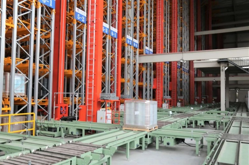 嶄新的玻纖成品倉庫,總高30米層高15層、設(shè)置18個雙深位巷道、共51720個貨位