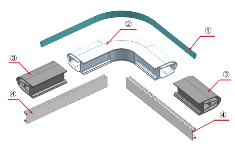 ①.導電條 ②.連接器  ③.本體  ④.型材