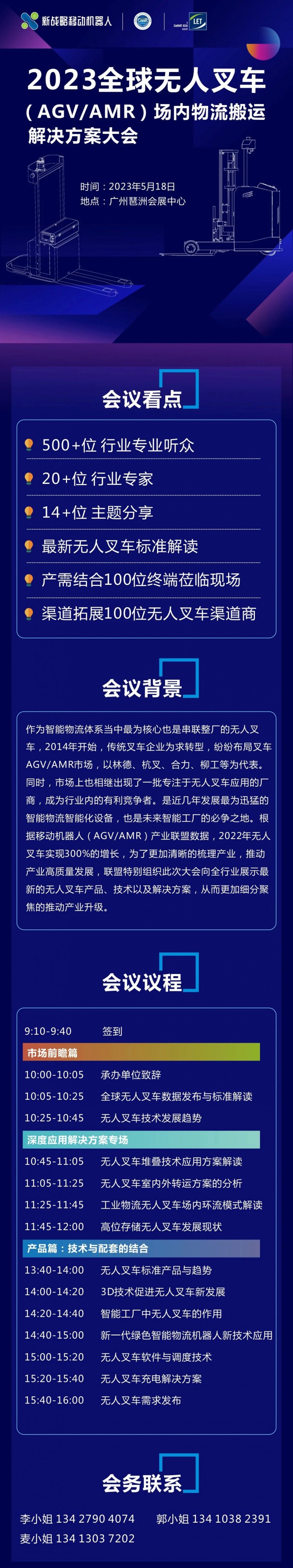 “2023全球無人叉車(AGV/AMR)廠內物流搬運解決方案大會”將重磅開啟,敬請期待!