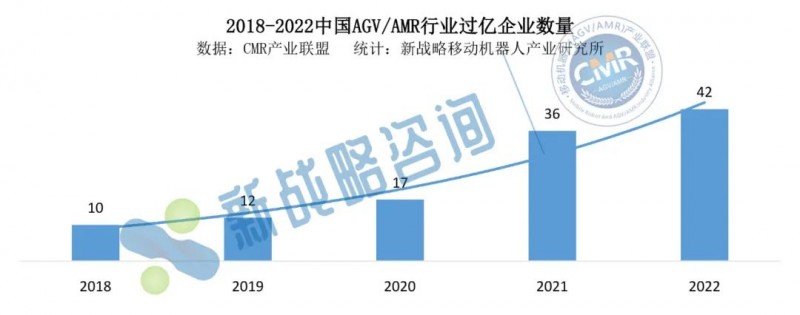 2022年度,中國市場AGV/AMR企業(yè)銷售額過億元的企業(yè)約42家,與2021年度的36家相比,新增了6家企業(yè)。