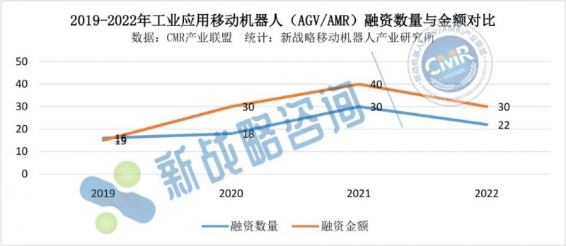 圖表:2019-2022年工業(yè)應用移動機器人(AGV/AMR)融資數量與金額對比