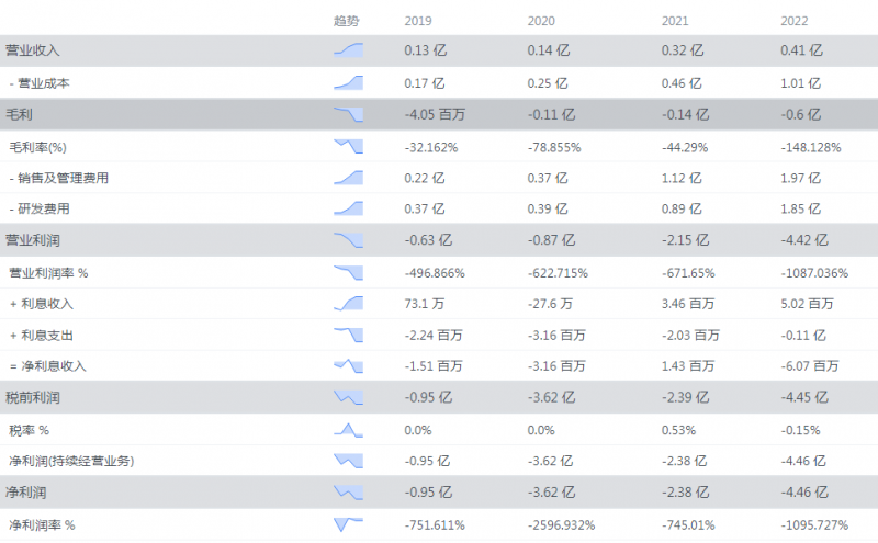 原始財報數據顯示,Luminar在2022年實現營收0.41億美元,對比2021年有所增長,但增幅不大。全年凈虧損達4.42億美元,較2021年同期翻倍。