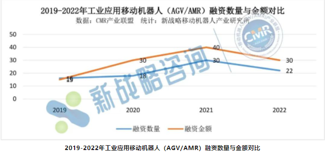 根據(jù)CMR聯(lián)盟數(shù)據(jù)統(tǒng)計(jì),2022年工業(yè)應(yīng)用移動機(jī)器人行業(yè)共發(fā)生22起融資事件,融資總額超過30億人民幣,無論是融資數(shù)量還是融資總金額方面,都較2021年有所下降。