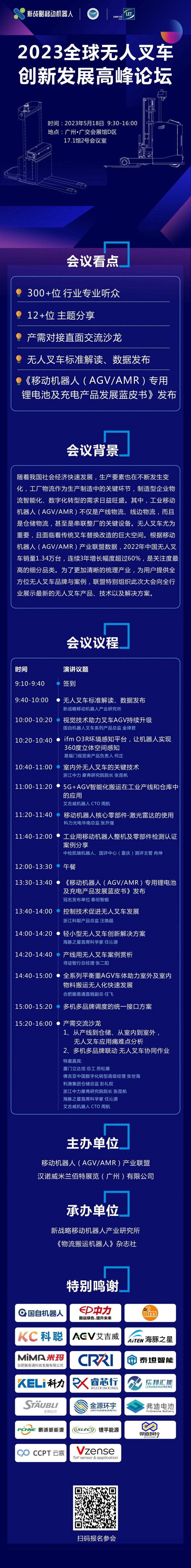 5月18日,為了更好地解讀無(wú)人叉車(chē)技術(shù)及市場(chǎng)應(yīng)用現(xiàn)狀,由CMR產(chǎn)業(yè)聯(lián)盟主辦的“2023全球無(wú)人叉車(chē)創(chuàng)新發(fā)展高峰論壇”將在廣州重磅開(kāi)啟,會(huì)議上,除14+主題演講外,還將重磅發(fā)布《移動(dòng)機(jī)器人(AGV/AMR)專(zhuān)用鋰電池及充電產(chǎn)品發(fā)展藍(lán)皮書(shū)(2023版)》,敬請(qǐng)期待!