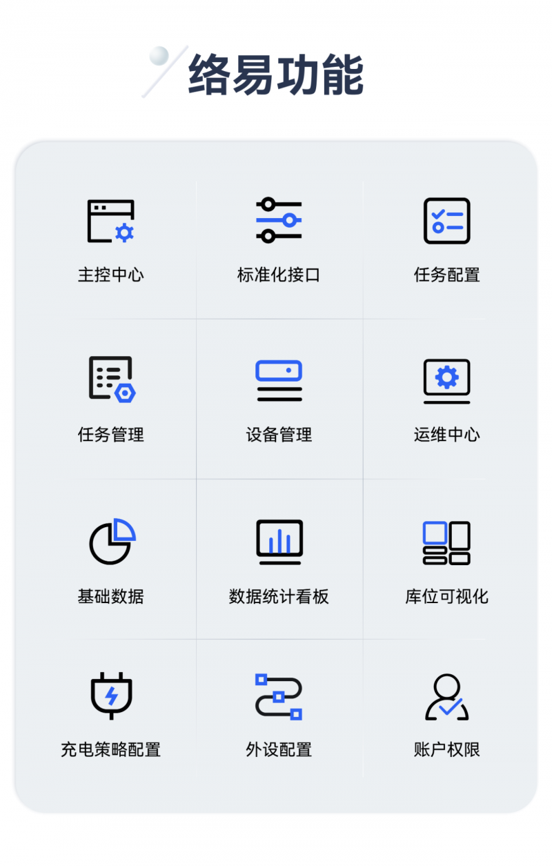 絡(luò)易的功能強(qiáng)勁,能滿足工廠和倉儲場景中小型項目的庫位管理、任務(wù)管理、車輛管理及容器管理等十大功能需求。也能通過標(biāo)準(zhǔn)任務(wù)接口連通上游系統(tǒng),靈活接受各種任務(wù),并智能適配載具,滿足不同作業(yè)場景內(nèi)“點到點”、“點到區(qū)域”、“區(qū)域到區(qū)域”的搬運(yùn)需求。
