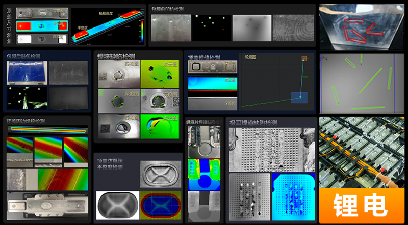 ??禉C(jī)器人3D解決方案完整覆蓋鋰電中段工藝,其中包括極片入殼前極耳焊接缺陷檢測、入殼后頂蓋焊縫尺寸測量、頂蓋周邊焊接缺陷檢測、頂蓋平整度檢測、注液封口后密封釘缺陷檢測、六面檢等。