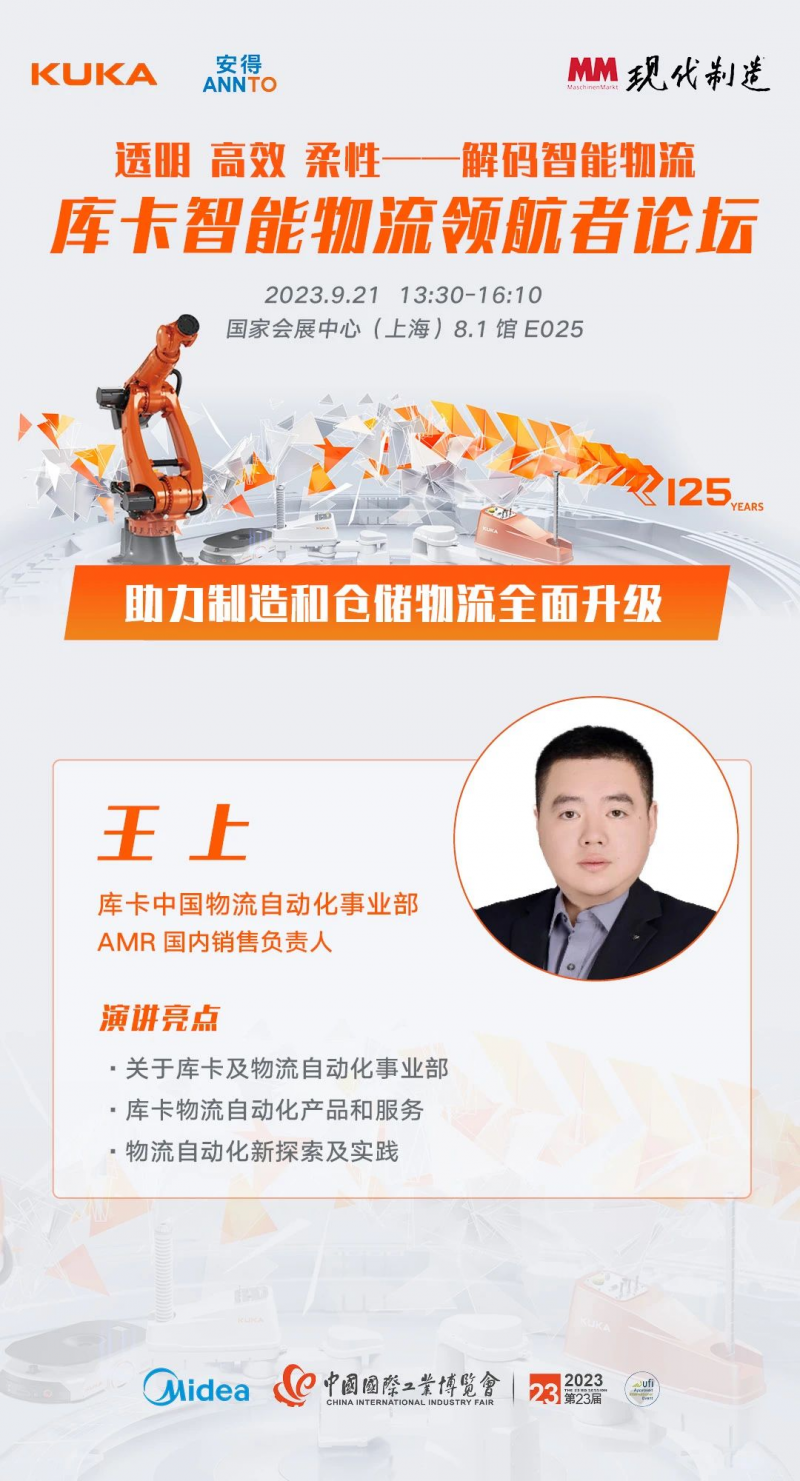 庫卡中國物流自動(dòng)化事業(yè)部AMR國內(nèi)銷售負(fù)責(zé)人王上將參與本次論壇和大家分享庫卡物流自動(dòng)化的最新技術(shù)、產(chǎn)品及解放方案,同時(shí)也會(huì)為大家?guī)韼炜ㄔ谠擃I(lǐng)域的新探索和新實(shí)踐,敬請期待。