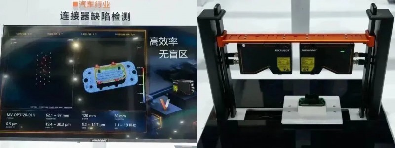 汽車(chē)連接器通常存在缺針、多針、斷針、偏位等問(wèn)題。我司采用兩臺(tái)DP3120相機(jī)進(jìn)行針腳成像,雙相機(jī)對(duì)頭拼接方法可有效消除由于連接器塑料殼邊沿形成的視野盲區(qū),全面提升成像視野范圍。DP3000系列相機(jī)內(nèi)置的抗反光干擾算法可以?xún)?yōu)化針腳的成像效果,在處理針腳排列問(wèn)題上,VM 3D算法開(kāi)發(fā)平臺(tái)特別推出了一種專(zhuān)用算子技術(shù),顯著地降低了檢測(cè)方案搭建的難度,幫助客戶(hù)快速輸出檢查結(jié)果。