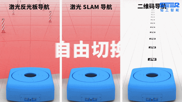 AMB 底盤激光配置更新,所有系列激光均可支持反光板導(dǎo)航,同樣支持與激光 SLAM、二維碼等導(dǎo)航方式的融合,多重定位運行更加精準,重復(fù)定位精度最高可達 ±2mm,實現(xiàn)機器人與設(shè)備無縫對接,高效搬運物料。