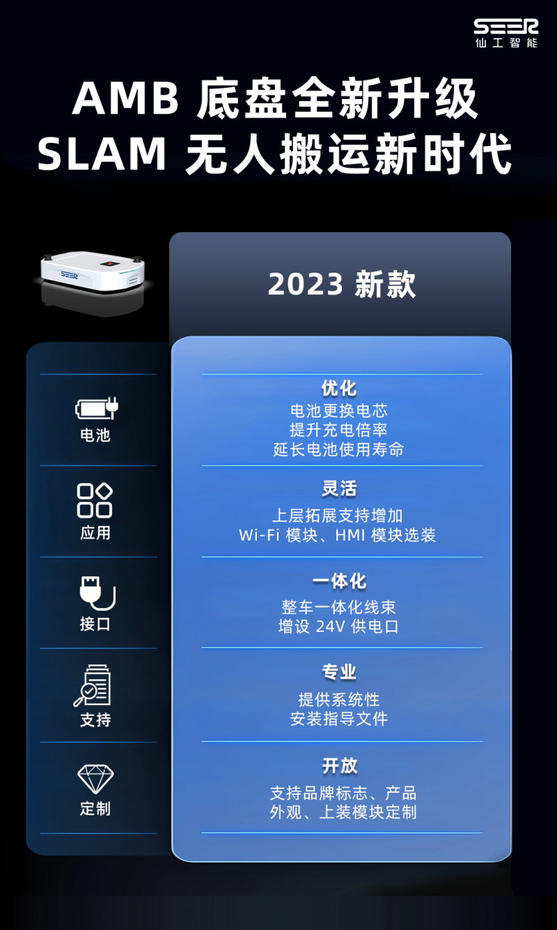 基于對客戶市場的深度分析和技術(shù)研發(fā)的長期積累,仙工智能在今年再次完成 AMB 底盤多個層面的優(yōu)化升級。