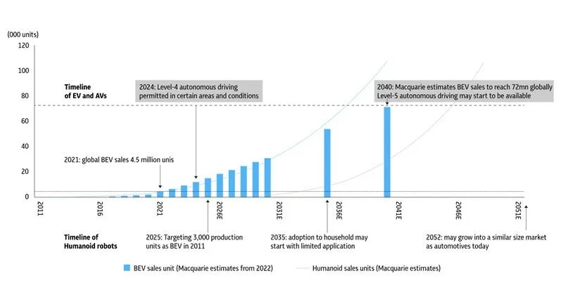 根據高盛在2022年發布的研究報告:“如果產品設計、用例、技術、成本和公眾接受度方面的障礙得到完全克服,預計到2035年,人形機器人的市場規模將高達1540億美元。”