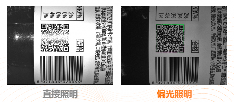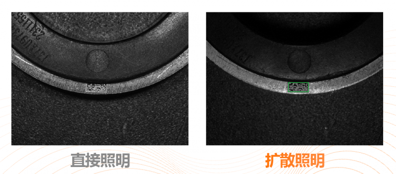 1.刻印深度淺,對比度極低:復合光源配合特殊打光角度,提升條碼對比度;
