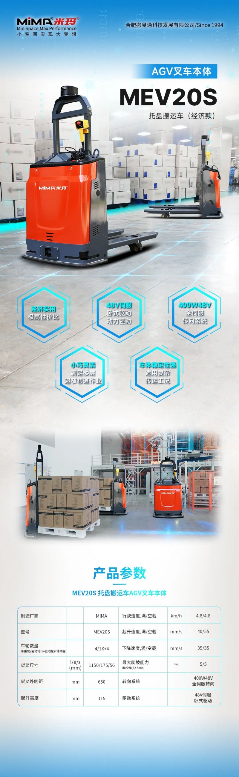 MiMA米瑪電動托盤搬運車經濟版-MEV20S,攜實車操作視頻重磅來襲!新一版本繼承原有搬運車的優勢功能——“核心參數不變,性能不減”,實現降本增效,智能升級,給消費者帶來全新的“經濟、高效、安全”的搬運體驗。托盤搬運車的重量輕、體積小,更適合在狹窄的空間內作業,價格低,進一步擴大了應用范圍。