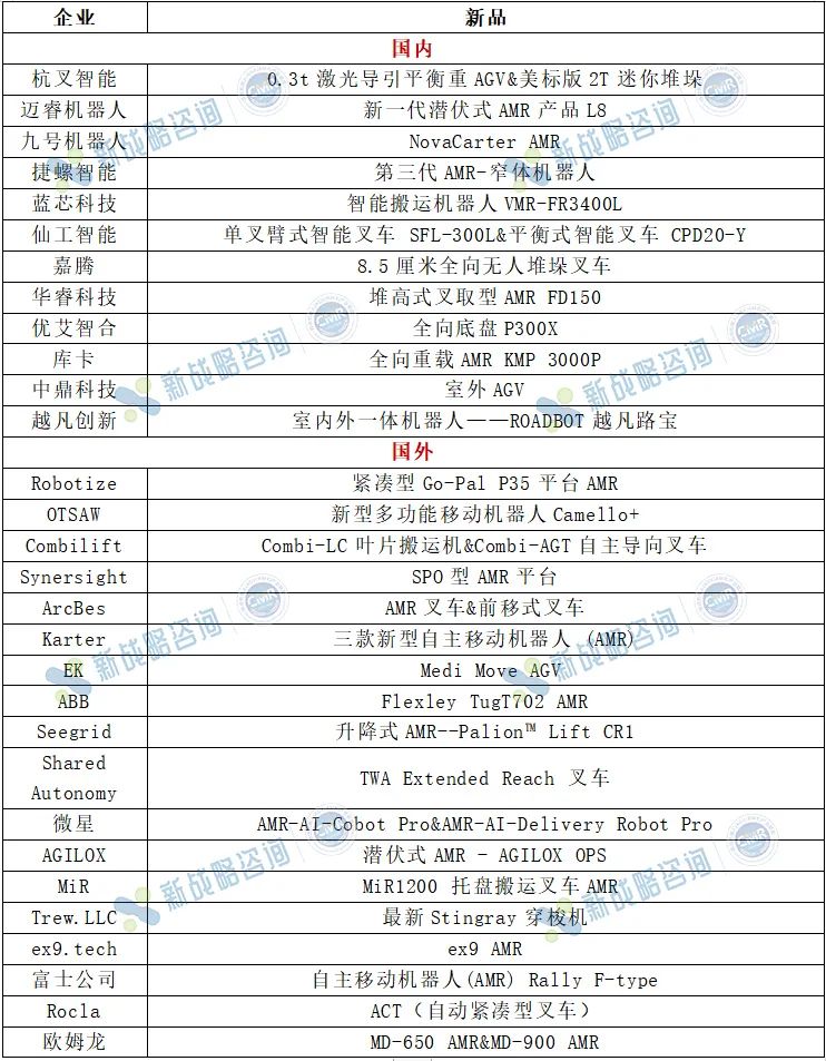 圖表:一季度國(guó)內(nèi)外AGV/AMR企業(yè)新產(chǎn)品(根據(jù)公開信息整理,如有遺漏,請(qǐng)指正?。?br />