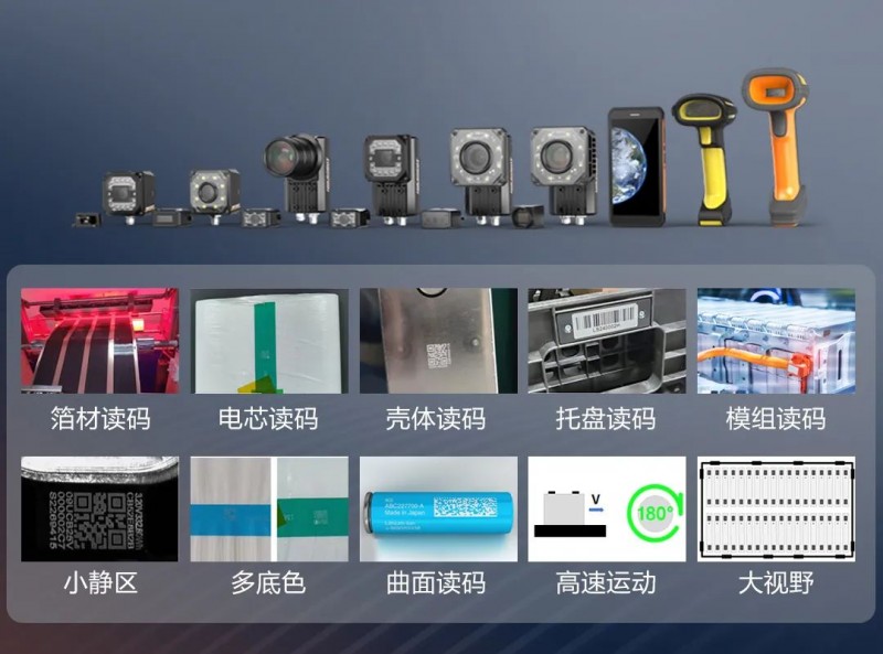追溯鋰電生產(chǎn)過程是數(shù)智化解決方案的重要一環(huán),海康機(jī)器人由此推出了豐富的智能讀碼產(chǎn)品,輕松應(yīng)對多底色讀碼、圓柱電池曲面讀碼、高速運(yùn)動(dòng)讀碼、大視野讀碼等復(fù)雜場景。