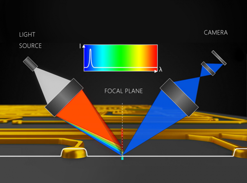2. 在3D測量成像領(lǐng)域,光譜共焦應(yīng)用中需要精確測量被測物表面的平整度和精度,需要500幀以上的相機采集高精度圖片進行圖像存儲和處理。