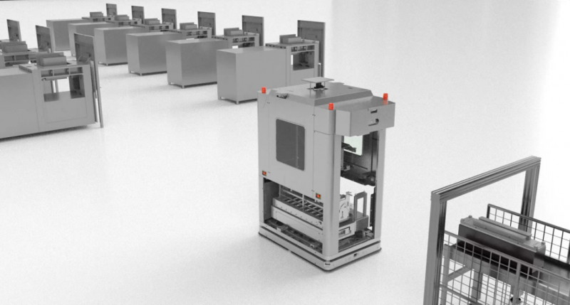 一體式方案,根據(jù)不同料盒形態(tài)的轉(zhuǎn)運需求,應用適配的移動機器人完成相應工序間的物料轉(zhuǎn)運。由于物料是直接存放在一體式機器人的倉位內(nèi),當出現(xiàn)前后工序間物料上下料節(jié)拍不匹配的場景時,一體式機器人可將物料存放在緩存站內(nèi),用于平衡工序間的生產(chǎn)節(jié)拍。