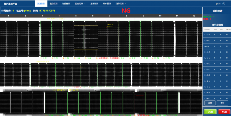 為了更好地追溯電池組件的全流程質(zhì)量,海康機器人定制開發(fā)了光伏組件決策看板,從單站檢測到各個機臺的集控復判,整個工廠的數(shù)據(jù)匯總、運行狀態(tài)一目了然。