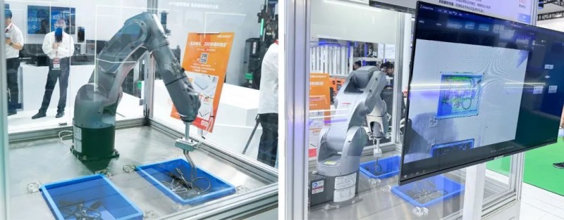 該環節還展示了覆膜碼讀取方案、疊焊檢測方案、光伏接線盒抓取方案。