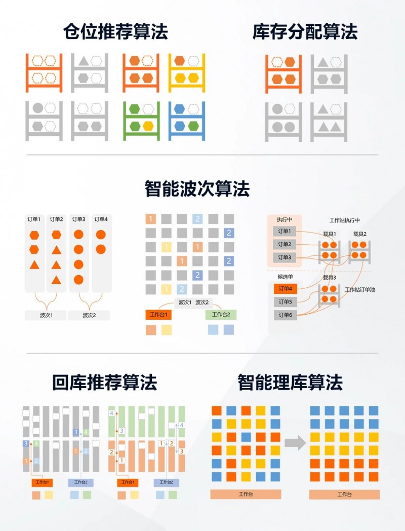 基于AI和深度學習,iWMS-Logistics融合五大智能算法。入庫環(huán)節(jié)倉位推薦算法,讓物料入庫合理分布;智能波次算法搭配庫存分配算法,考慮優(yōu)先級、庫存分布、關聯(lián)性等因素,實現(xiàn)庫存最優(yōu)分配和出庫站點均衡指派,助力日上免稅行實現(xiàn)日最大出庫15W行;智能理庫算法,在非作業(yè)時間段,由AMR智能理庫,使每個器具調整到最佳倉位,提高出庫效率。