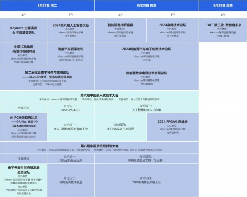 elexcon深圳國際電子展將于 2024年8月27-29日 在深圳會展中心(福田) 舉辦,圍繞嵌入式AI產(chǎn)業(yè),現(xiàn)場重要展商及同期重要活動已公布,活動亮點先睹為快!