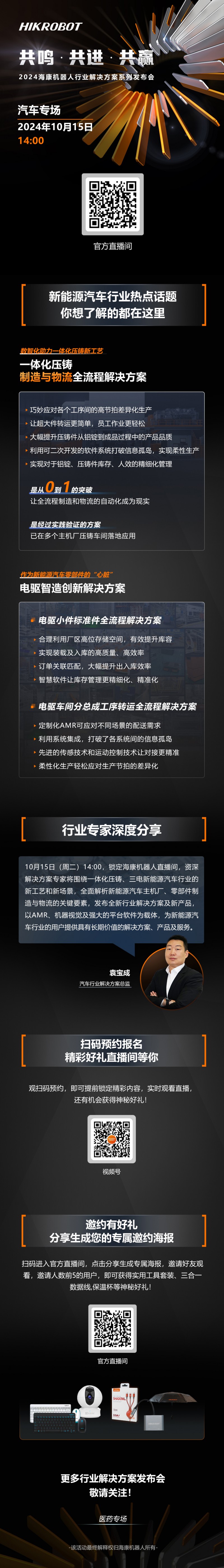 直播預(yù)告丨海康機器人一體化壓鑄與電驅(qū)創(chuàng)新解決方案助力新能源汽車智造
