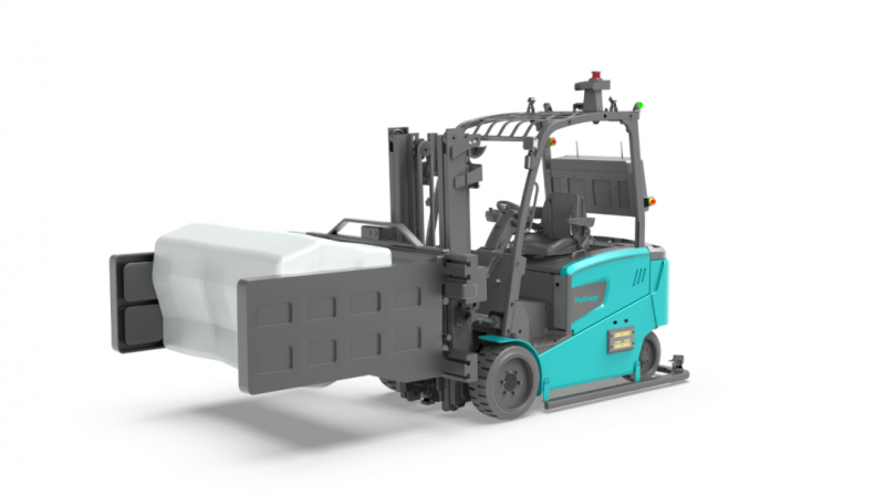 勱微E系列平衡重式無人叉車搭載弧形自適應(yīng)夾具,夾緊物料后可連續(xù)360°旋轉(zhuǎn),便于交換作業(yè),廣泛用于造紙、紙箱、包裝、印刷等行業(yè)無托盤搬運(yùn)。