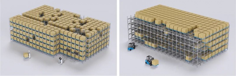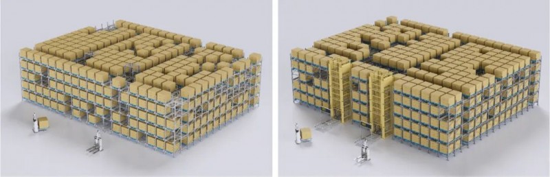 柔性方面:六向穿梭車庫可根據(jù)場地,靈活規(guī)劃儲位;可根據(jù)SKU,靈活規(guī)劃深位;可根據(jù)效率,靈活規(guī)劃緩存位。而堆垛機(jī)庫的剛性結(jié)構(gòu),在儲位及深位規(guī)劃上具有很大弊端。