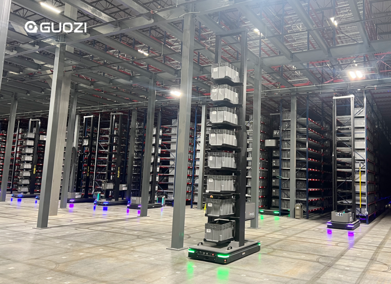 2023年,國自在一期項目中提供了全流程智能倉儲解決方案,在超過2萬平方米的倉庫中,通過高密度料箱存儲和“料箱到人”模式,解決了15萬個SKU的存儲和高效揀選問題,并在6個月內完成實施。