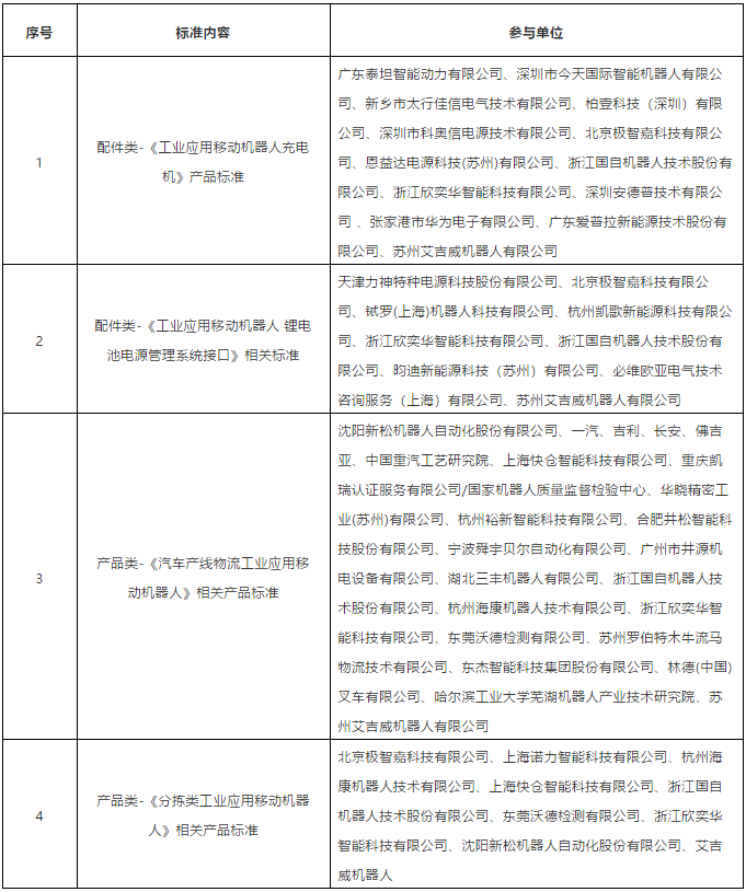 圖表:移動機器人產業聯盟制定的6項團體標準