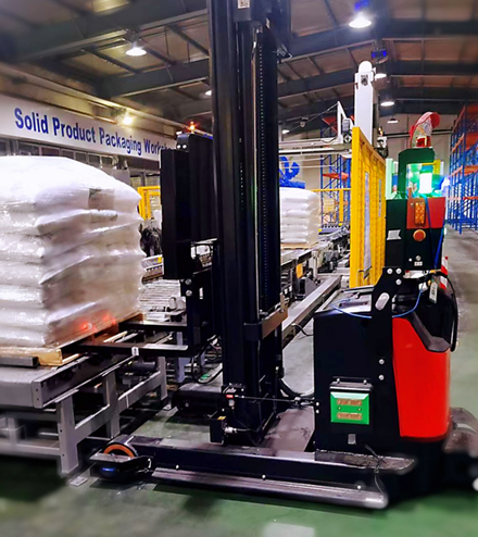 該項(xiàng)目客戶為韓國(guó)資本在中國(guó)的化工外企,杭叉智能通過(guò)整合機(jī)械臂、輸送線、穿梭車、打包機(jī)以及WMS等軟硬件,結(jié)合自身新款堆垛前移車進(jìn)行項(xiàng)目規(guī)劃,充分發(fā)揮車輛小巧靈活,對(duì)于空間需求進(jìn)一步縮小的優(yōu)勢(shì),配以鋰電快充大容量的特點(diǎn)以及5G通訊技術(shù)的巨大優(yōu)勢(shì),因地制宜,在較短的時(shí)間內(nèi)完成實(shí)施并將項(xiàng)目投入使用,完全替代了原先人工車的作業(yè)模式,達(dá)到了機(jī)器換人的目的,實(shí)現(xiàn)整體物流智能化。