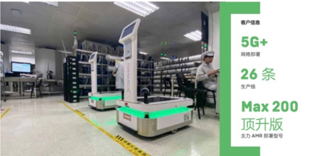 全球領(lǐng)先的某大型通信設(shè)備公司無(wú)線小基站智能工廠項(xiàng)目,迦智科技近百臺(tái)自然導(dǎo)航AMR,在5G技術(shù)低延時(shí)、高帶寬、高速率的傳輸特性加持下,實(shí)現(xiàn)了與用戶現(xiàn)場(chǎng)的MES、WMS以及第三方設(shè)備間的互聯(lián)互通,信息上傳下達(dá),交互協(xié)同作業(yè)。