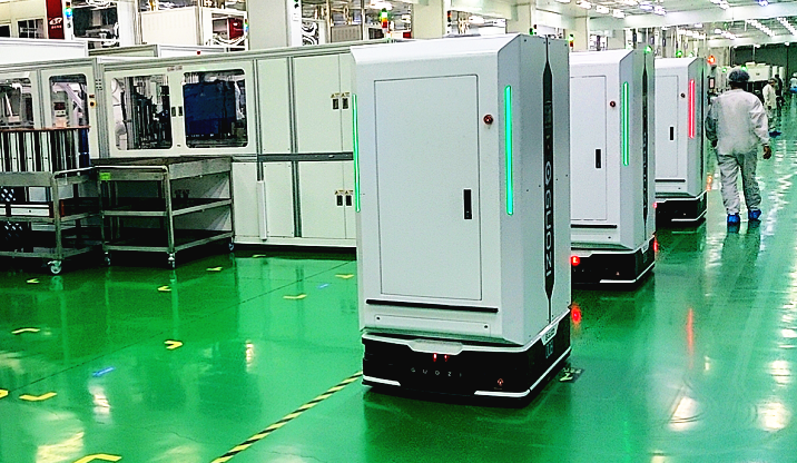 國自光伏晶硅電池片工廠AGV智能搬運整體解決方案,能實現(xiàn)大規(guī)模智能物流機器人物料轉(zhuǎn)運,替代原有人工作業(yè)模式,大幅提升產(chǎn)能并持續(xù)保證生產(chǎn)線穩(wěn)定運行。