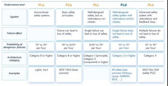 EN ISO 13849-2015標(biāo)準(zhǔn)定義了不同安全部件所需的性能級(jí)別(PLa to PLe)。行業(yè)標(biāo)準(zhǔn)要求AGV制造商達(dá)到的是PLd級(jí)別的安全規(guī)劃。具體來(lái)說(shuō),這種安全水平確保了車輛在發(fā)生單一故障時(shí)仍能繼續(xù)運(yùn)行,例如使用兩個(gè)冗余通道。在斷層同步堆積的情況下,仍然可能發(fā)生安全功能的喪失,盡管這種可能性很小。